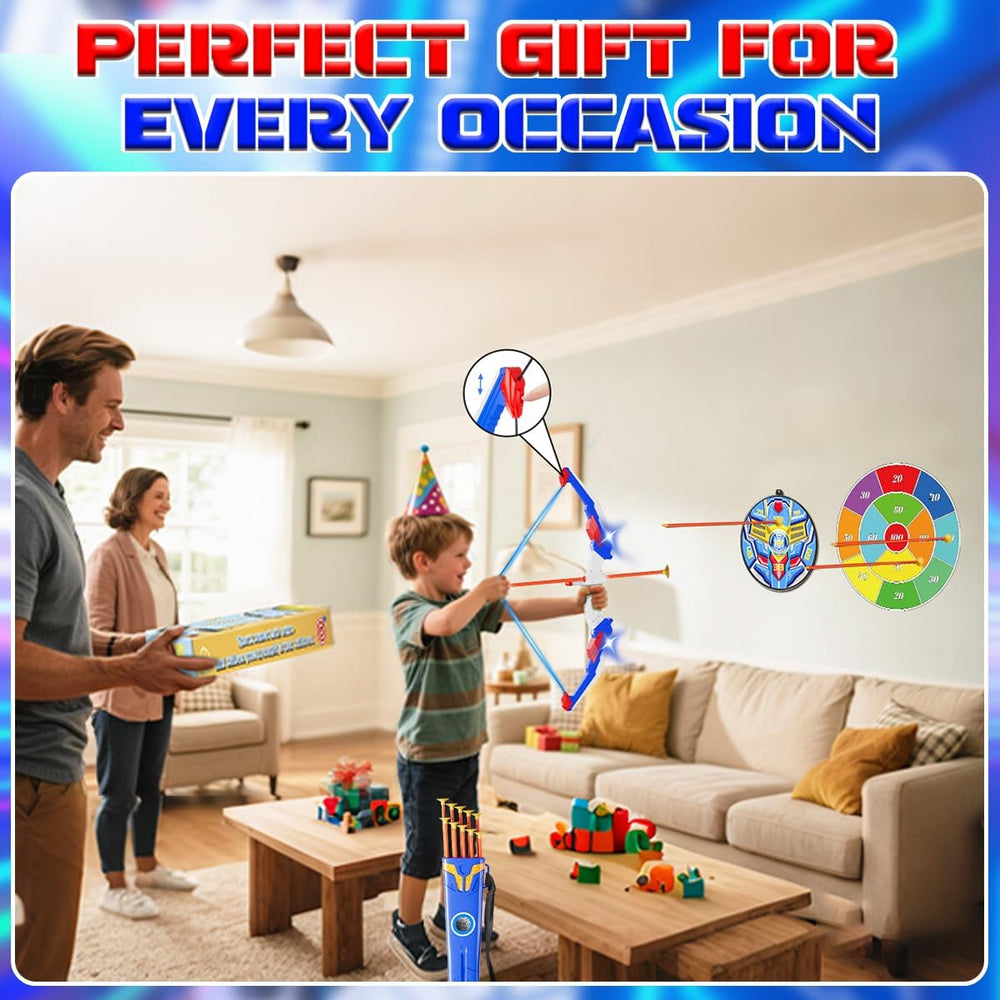 Let kids enjoy safe and active play with this LED Light-Up Bow and Arrow Set. Complete with suction cup arrows, a standing target, and a quiver, it’s perfect for indoor and outdoor archery fun. Designed for boys and girls ages 4-12, this toy set promotes coordination, focus, and active play, making it an ideal sport gift or birthday present.