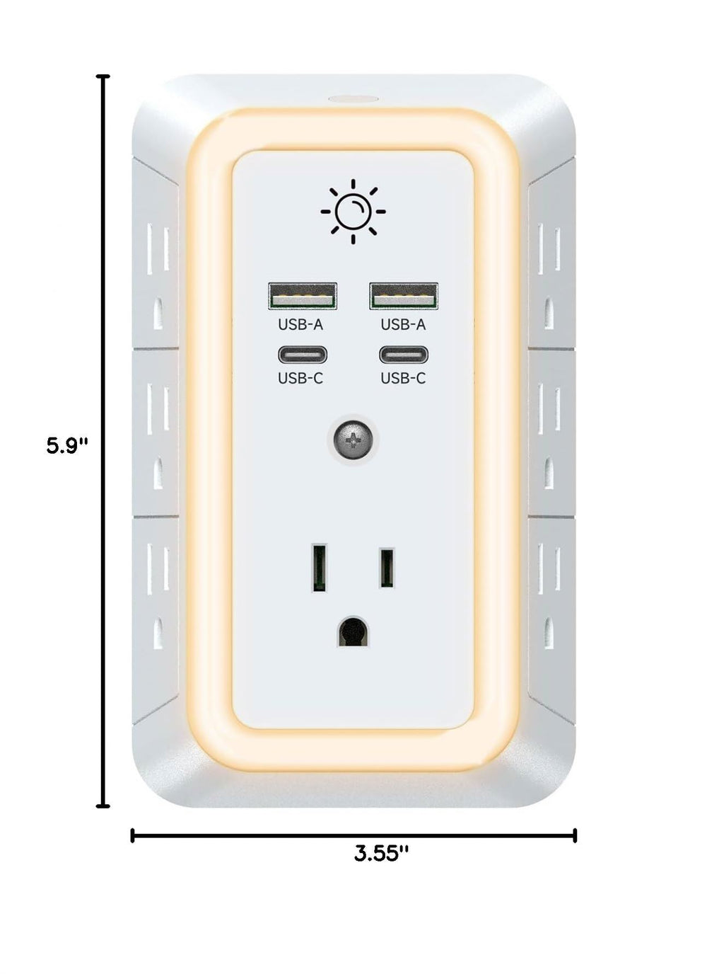 Upgrade your charging setup with this Wall Charger & Surge Protector Outlet Extender, designed for fast, safe, and efficient power distribution. Featuring 4 USB charging ports and multiple AC outlets, this compact adapter is perfect for powering smartphones, tablets, laptops, smart home devices, and more.